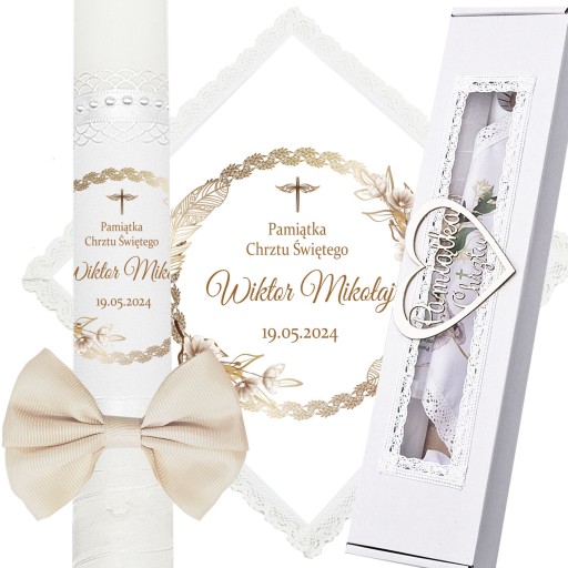 ŚWIECA NA CHRZEST SZATKA DO CHRZTU IMIĘ PUDEŁKO