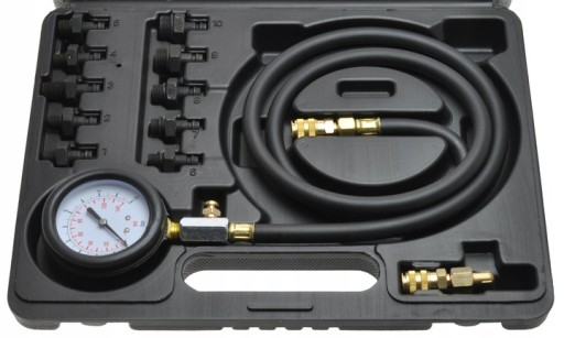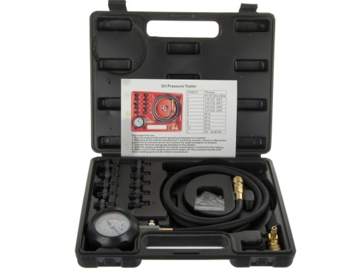 Profesjonalny tester ciśnienia oleju. Zestaw służy do kontroli ciśnienia w układzie olejowym silników benzynowych i diesla.