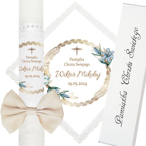 ŚWIECA NA CHRZEST SZATKA DO CHRZTU IMIĘ