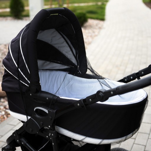 Uniwersalna moskitiera do wszystkich typów wózków dziecięcych.
