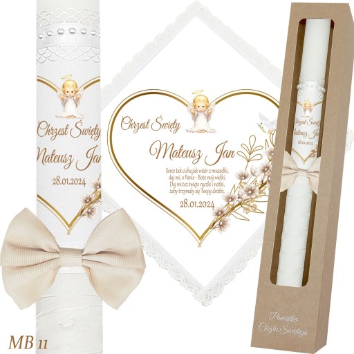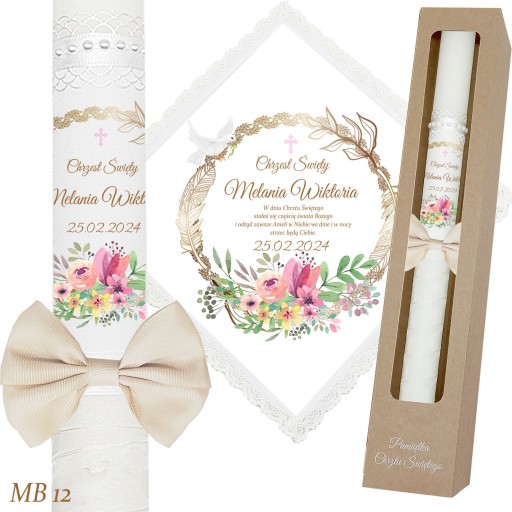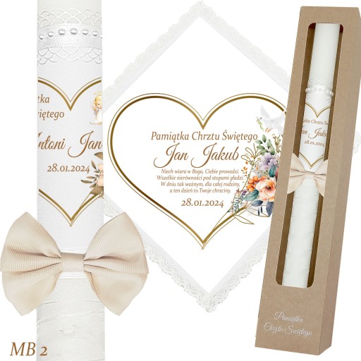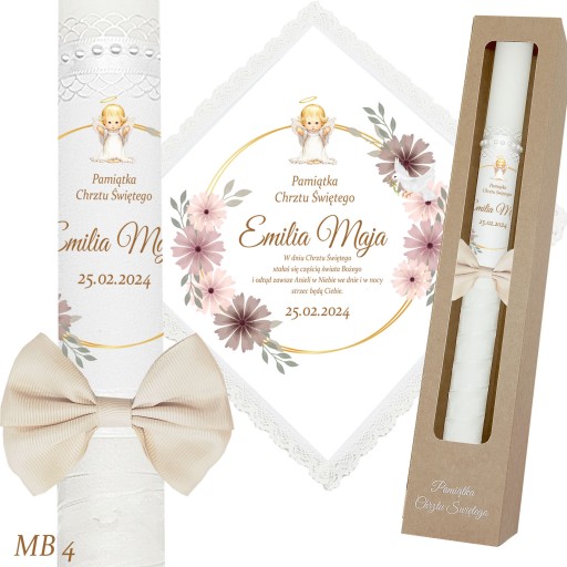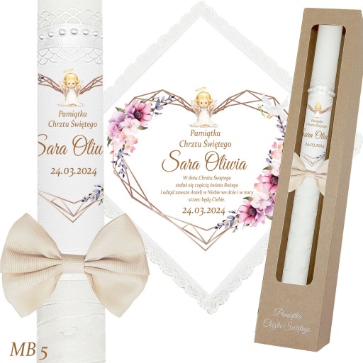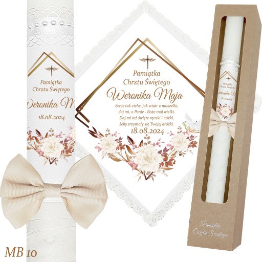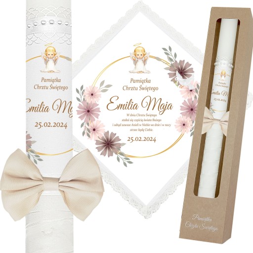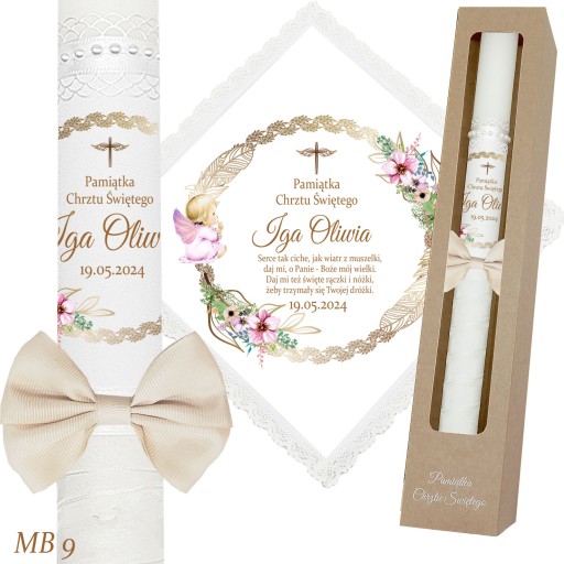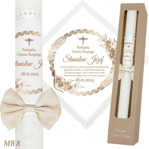 Pudełko posiada praktyczne okienko z folią, które pozwala na podziwianie świecy bez potrzeby jej wyjmowania. Idealnie pomieści również szatkę do chrztu, dbając o estetyczne przechowywanie obu pamiątek. Wyjątkowy nadruk "Pamiątka Chrztu Świętego" nadaje naszemu produktowi wyjątkowego charakteru, czyniąc go idealnym prezentem na tę wyjątkową okazję.