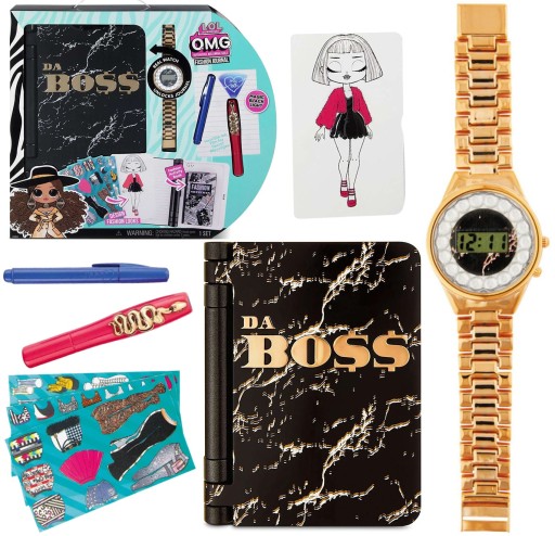 Zostań królową mody tak, jak Da Boss i przechowuj wszystkie swoje sekrety w tym stylowym elektronicznym pamiętniku! Otwórz Modowy Pamiętnik L.O.L. Surprise! O.M.G. Outrageous Millennial Girls™ przy pomocy zawartego w zestawie prawdziwego, złotego zegarka. Podczas otwierania pamiętnik wygrywa piosenkę L.O.L. Surprise!