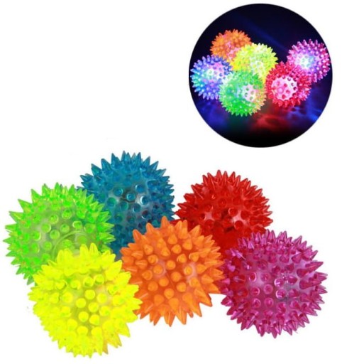 PIŁKA PIŁECZKA ŚWIECĄCA 6,5CM Z KOLCAMI GUMOWA