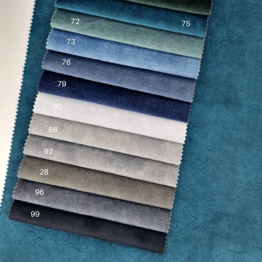 - 72 - turkusowy jasny, 73 - turkusowy, 75 - turkusowy ciemny, 76 - niebieski, 79 - granatowy, 80 - złamany biały, 88 - popielaty, 92 - szary