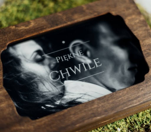 Drewniane pudełko na zdjęcia 15x23 i 15x21 zamykane na magnes z szybką ze szkła akrylowego.