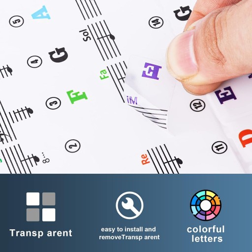 Zdejmowane naklejki: bez pozostalosci na naklejkach wysokiej jakosci.Naklejki fortepianowe dla klawiszy sa idealnie dopasowane do klawiatury, dzieki czemu mozna wyraznie zobaczyc naklejke i znalezc prawidłowe klawisze bez opuszczania glowy