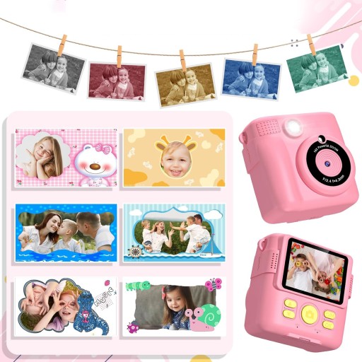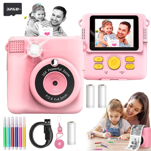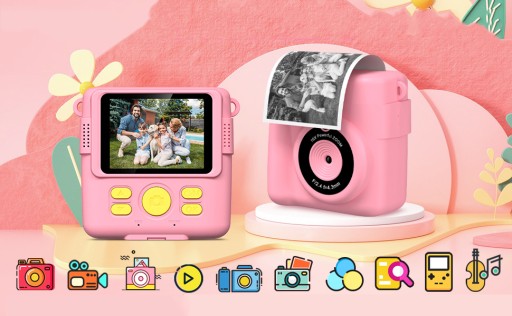 📷Ten aparat dla dzieci umożliwia natychmiastowe drukowanie, duży ekran o przekątnej 2,4 cala, nagrywa wideo w rozdzielczości 1080P, 16-krotny zoom cyfrowy, lampę błyskową, fotografię poklatkową, zdjęcia seryjne, gry, ramki filtrów i pliki mp3.