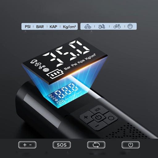 - 🚲Cechy: przenośna dysza powietrzna/podwójny wyświetlacz numeryczny/oświetlenie LED/ładowanie jednym przyciskiem/zatrzymanie/duża moc/długa żywotność baterii/obsługuje ładowanie telefonu komórkowego
