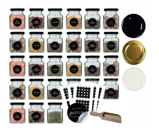 Słoik słoiki na przyprawy 120ml 20szt +200 naklejki M2 zakrętka Z55 łopatka