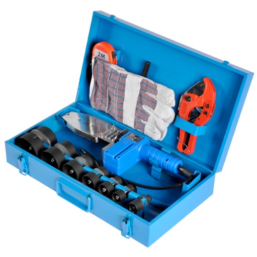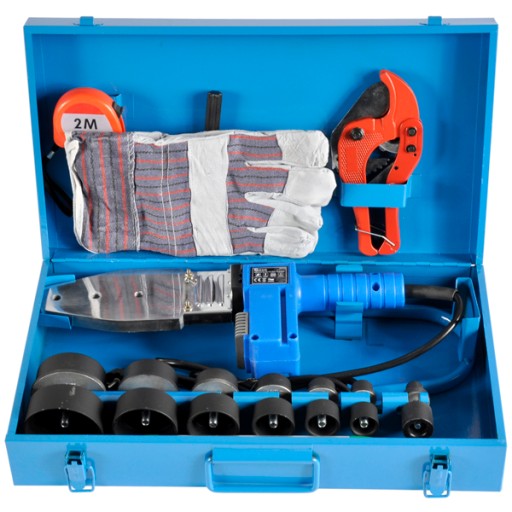 Zgrzewarka 1500W LCD do zgrzewania rur i kształtek z polimerów polietylenu (PE), polipropylenu (PP) oraz polibutylenu (PB); stosowanych do wykonywania instalacji wody oraz centralnego ogrzewania.