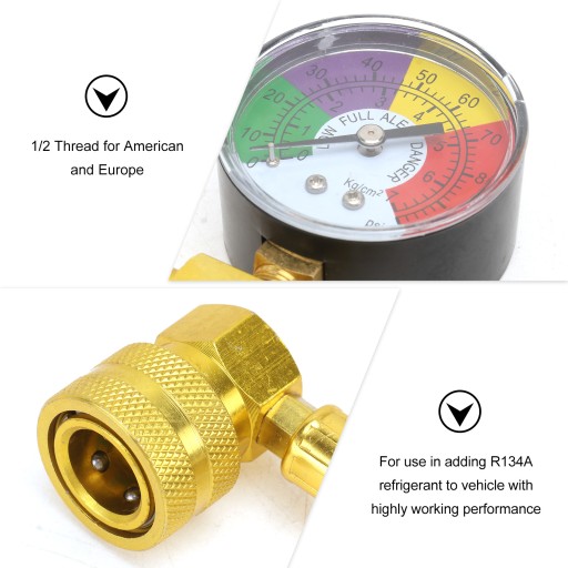 - Ten moduł kontrolny chłodniczym R134A jest wyposażony w kontroler do podglądu podczas użytkowania. Charakteryzuje się mocną konstrukcją o występowaniu, a gwint 1/2 jest specjalnie dostępny dla Amerykanów i Europy. Sprawdź przy dodawaniu czynnika chłodniczego R134A do pojazdu z wydajnością roboczą.