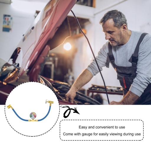 - 1 * Wąż do ładowarki chłodnicy klimatyzacji R134A z manometrem do samochodu (gwint 1/2 dla Ameryki i Europy)
