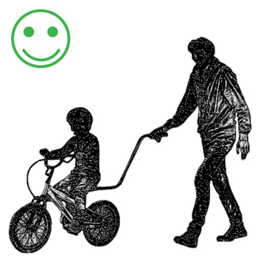 ➡️ PROWADNIK - zakończony specjalną gumową osłonką dzięki, której osoba prowadząca ma możliwośc stabilnie utrzymywać rower.