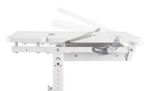 Pochylany pulpit w zakresie 0-40 stopni pozwala osiągnąć ergonomiczne kąty do czytania, pisania i rysowania. Dzięki tej konstrukcji stół może zapewnić wygodne pozycje do pracy i pomaga uniknąć bólu szyi oraz kręgosłupa. Po ustawieniu pochylenia, należy dokręcić pokrętło zabezpieczające, dzięki czemu mamy pewność, że biurko pozostanie w aktualnym ustawieniu.