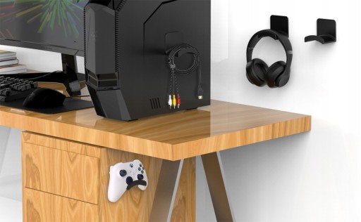 - W przeciwieństwie do innych uchwytów, które są zbyt wąskie, aby pomieścić większe zestawy słuchawkowe do gier. Wieszak na słuchawki ma duży uchwyt do zawieszenia wszystkich słuchawek.