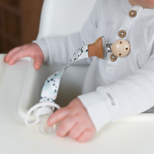 Tasiemka do smoczków uspokajających to ciekawy i stylowy dodatek do smoczka i ubranka dziecka, który spełnia przede wszystkim rolę ochronną, ponieważ zabezpiecza smoczek przed zgubieniem oraz upadkiem na ziemię i zabrudzeniem. Sprawdzi się zarówno w domu, jak podczas spacerów czy w podróży. Jest specjalnie przystosowana pod kątem bezpieczeństwa dziecka. Zawieszka wykonana została z trwałej tasiemki. Posiada odpowiednie zapięcie wykonane w postaci drewnianego klipsa. Łatwe i szybkie mocowanie. Stanowi także unikalną ozdobę ubranka dziecka. Smoczek zawsze pozostaje w zasięgu ręki. Pasuje do każdego smoczka z uchwytem i bez uchwytu. Dobrze się trzyma ubranka i nie powoduje uszkodzenia materiału.