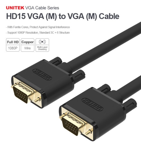 Vga Unitek cables are made from 100% copper, have gold-plated connectors and are characterised by the highest parameters. Built-in ferrite fuses protect against EMI, RFI and other interference and stabilise the signal transmission. The individual rays are repeatedly shielded with metal and aluminium foil so that the image is clean, clear and distortion-free. Vga Unitek cable can create a full HD image with a max. 1920 x 1080p resolution. The following cable lengths are available in our assortment: 0. 5 m, 1 m, 1 m. 5 m, 2 m, 3 m, 5 m, 8 m, 10 m, 15 m, 20 m, 25 m and 30 m, depending on the cable length, cables are made with parameters 26-28 AWG. The cables are thin, flexible but very durable. They are compatible with all devices equipped with a VGA port. Unitek also takes care of the functional aspects of the delivered goods. Wires are supplied in an aesthetic thread packaging and larger lengths in a cardboard box. Each cable is attached with a band to better control the organisation of its flow. The cable ends are protected with a dust cap. And all this so that the cable will last for many years.
