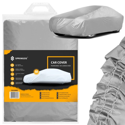 Pokrowiec marki Springos® wykonany jest z trwałego i wytrzymałego materiału. Doskonale spisze się zarówno latem pełniąc ochronę przed promieniowaniem UV. nagrzewaniem się wnętrza i zimą podczas niskich temperatur. Plandeka jest bezpieczna dla lakieru i felg.