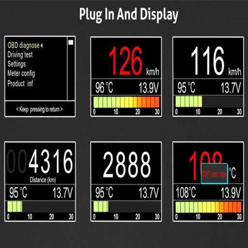 ❗Wyświetlacz i monitora napięcie akumulatora pojazdu❗Napięcie generatora ładowania❗Oferujący alarm prędkości pojazdu❗Wysoka temperatura płynu chłodzącego silnika alarmuje i monitoruje zużycie i test hamulca❗Odczyt strumieni danych pojazdu❗Skanowanie kodów usterek silnika i kodu suuportfault DTCfunctions❗Funkcja wczesnego ostrzegania: ostrzeżenie o temperaturze wody, ostrzeżenie o przekroczeniu prędkości, ostrzeżenie o zmianie biegów