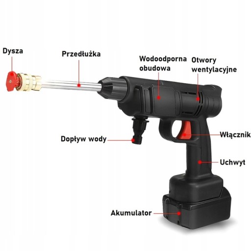 Akumulatorowa MYJKA CIŚNIENIOWA 2xAKU Pistolet do Mycia Pompa Wody 300W