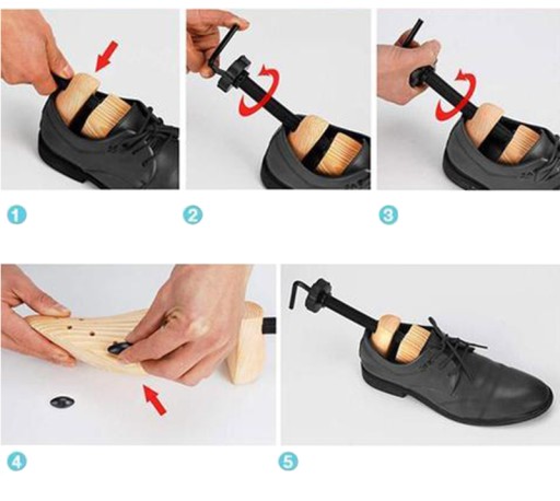 5. Zostaw prawidło w bucie przynajmniej przez 24 godziny. Należy pamiętać, że proces rozciągania powinien trwać kilka dni, tak, aby nie uszkodzić obuwia. Zalecane jest również użycie preparatów, które wspomagają rozciąganie skóry obuwia.