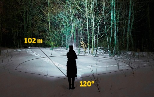 ⭐ Duży zasięg źródła światła - 102 m