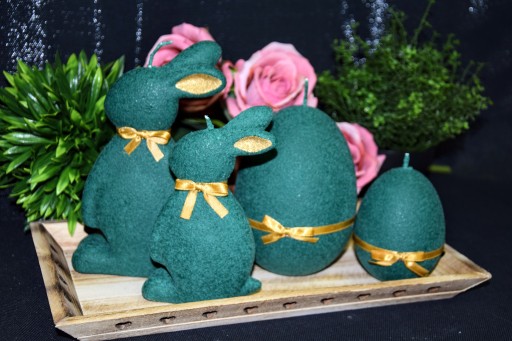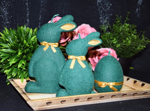 СВЕЧА ПАСХАЛЬНЫЙ ЗАЯЦ 19СМ ВЕЛЮР ТЕМНО-ЗЕЛЕНАЯ