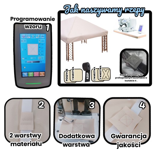 Jesteśmy jedynym producentem poszyć naszywającym rzepy w ten sposób.