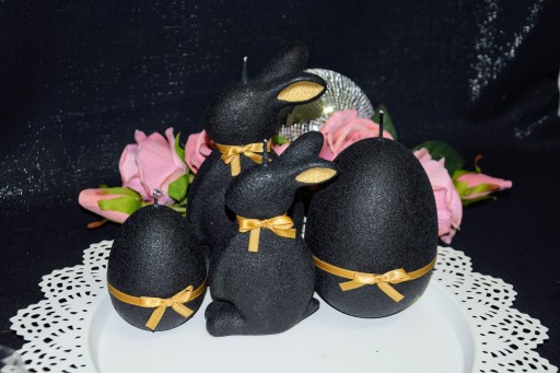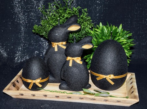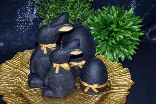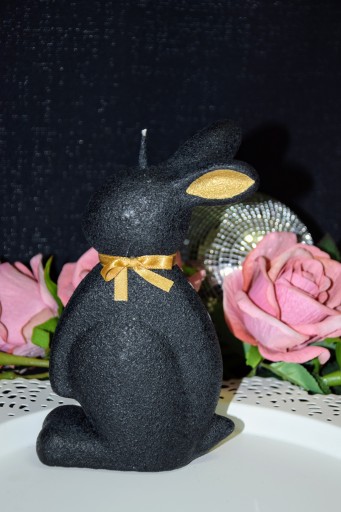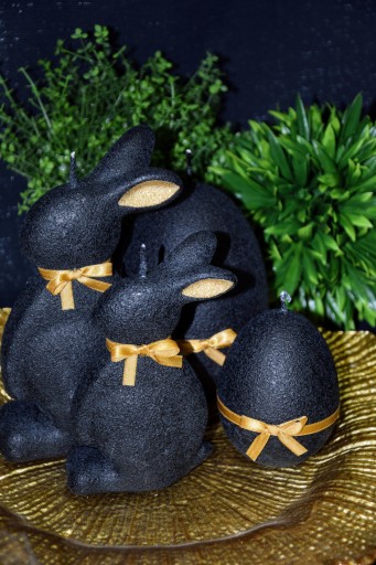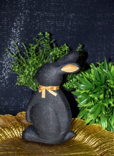 СВЕЧА ПАСХАЛЬНЫЙ ЗАЯЦ 19СМ ВЕЛЮР ЧЕРНЫЙ + ЗОЛОТО