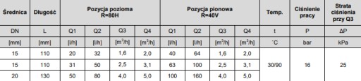 - strumień ciągły Q3: 4,0 m3/h
