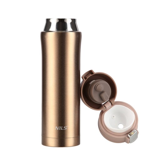 - Kubek termiczny NCB10 marki Nils cechuje zarówno prosta konstrukcja jak i oryginalny design! NCB10 to kubek termiczny wykonany jest ze stali nierdzewnej o podwójnej ściance, dzięki czemu gwarantuje utrzymanie temperatury ciepłych napoi przez 12 godzin, a zimnych przez 24 godziny. Tym, co wyróżnia kubek NCB10 jest system otwierania z opcją blokady, przez co kubek termiczny jest niezwykle szczelny, dlatego można go zabrać wszędzie i nie martwić się, że będzie przeciekać. Żeby zwolnić blokadę i otworzyć wieczko, wystarczy przesunąć przycisk zabezpieczajacy w górę, a następnie nacisnąć na przycisk otwierania i gotowe, kubek automatycznie się otworzy.