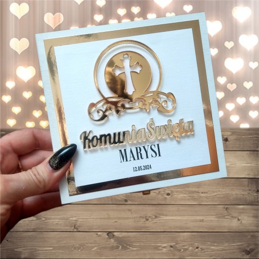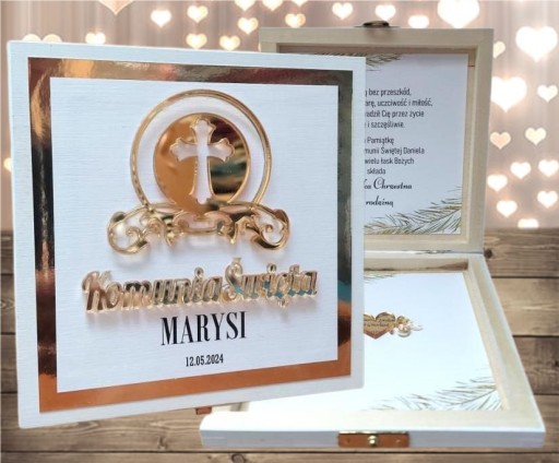 Бело-золотая коробочка для СВЯТОГО ПРИЧАСТИЯ с четками * сувенирный НАБОР