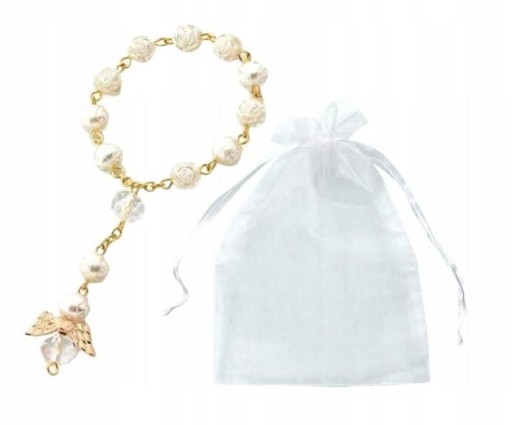 - złota dziesiątka różańca z aniołem 12cm w woreczku