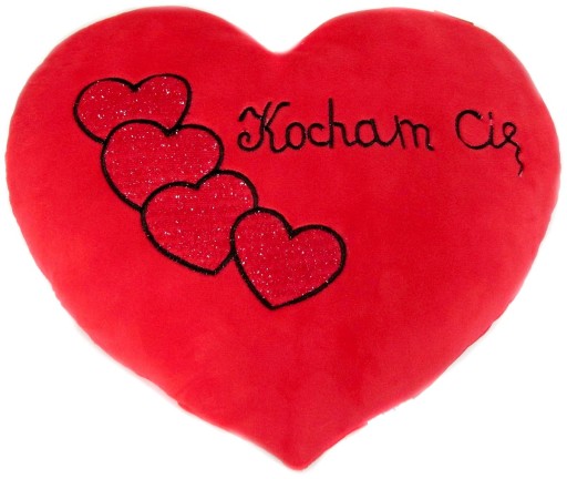 Świetna poduszka w kształcie serca z haftowanym motywem.