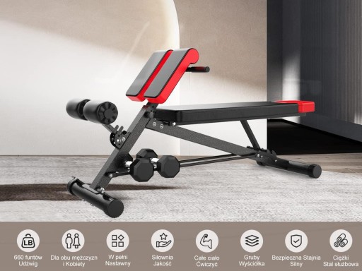- Ławka z funkcją hiperprostnego krzesła rzymskiego: Idealna ławka treningowa do wykonywania przeprostów. Zbuduj pośladki, ścięgna podkolanowe i rdzeń jednym ruchem. Świetny sprzęt treningowy do treningu domowego i treningu siłowego.