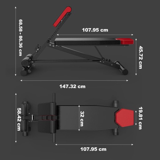 - Regulowana ławka do ćwiczeń całego ciała: zaprojektowana do treningu całego ciała, aby kształtować ramiona, mięśnie brzucha, plecy, klatkę piersiową, pośladki, ścięgna podkolanowe i rdzeń. Używaj do wyciskania na ławce lub setek innych ćwiczeń.