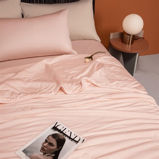 Całoroczny komfort – ten lekki koc może regulować temperaturę ciała i odprowadzanie wilgoci, przyspieszać cyrkulację powietrza, obniżyć temperaturę, dzięki czemu skóra pozostaje sucha i chłodna, bez pocenia się w nocy i chroni przed uczuciem lepkości, niezależnie od tego, czy latem czy zimą.