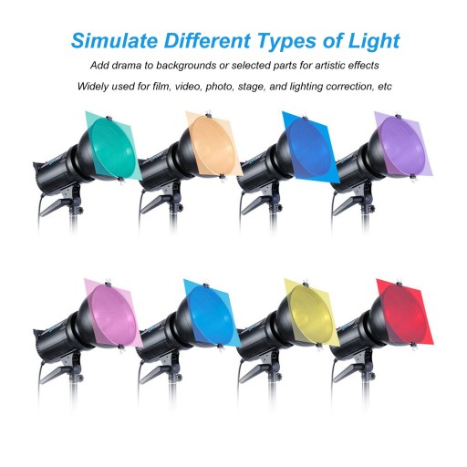 1. Profesjonalny: kolorowe folie filtrujące do tworzenia różnych kombinacji filtrów, takich jak fajne efekty, korekcja kolorów, idealne do studyjnych lamp stroboskopowych LED.
