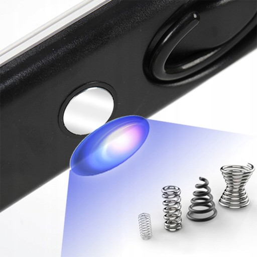 Lampa jest praktyczna dzięki wbudowanemu magnesowi oraz haczykowi. Dzięki nim nie musisz trzymać jej w ręce, co pozwala na swobodne powieszenie urządzenia w dowolnym miejscu. To rozwiązanie znacząco poprawia komfort pracy, zwłaszcza w sytuacjach, gdzie potrzebujesz oświetlenia w trudno dostępnych miejscach. Możesz powiesić lampę na przykład na metalowej szafce i wykonywać pracę wykorzystując obie ręce.