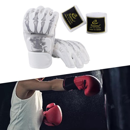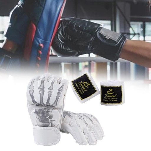 Rękawice bokserskie z półpalcem Rękawice MMA do worka treningowego Muay Thai Sztuki Walki Biały Szkielet