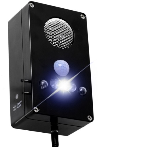 сильный отпугиватель животных + сильная вспышка + сирена + датчик движения