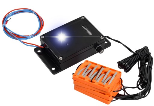 UWAGA: po włączeniu odstraszacza nie dotykać pomarańczowych płytek - grozi porażeniem prądem !!