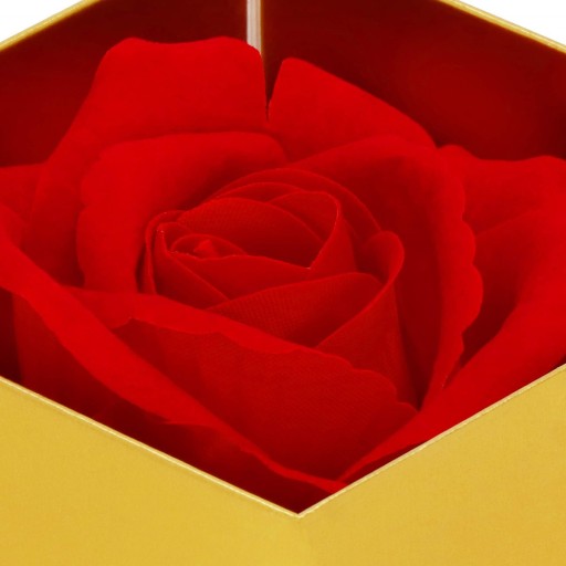 - Róża przymocowana wewnątrz pudełka do miękkiej podstawy z funkcją wyjmowania