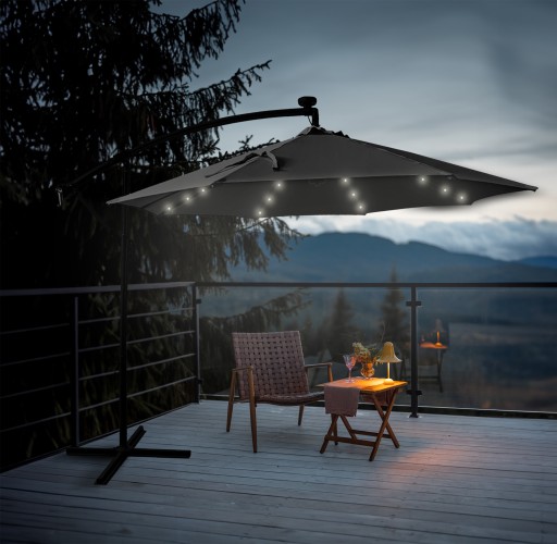 БОЛЬШОЙ РАСШИРЯЕМЫЙ РЕГУЛИРУЕМЫЙ САДОВЫЙ ЗОНТ С 24 СВЕТОДИОДАМИ SOLAR CHICAGO 270 СЕРЫЙ