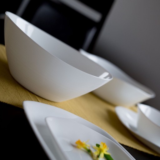 Salaterka szklana o owalnym kształcie. Duża miska doskonale sprawdzi się jako salaterka na sałatki. Obła linia naczynia i matowa faktura na zewnętrznej części salaterki nadają jej ciekawego wyglądu i pięknie prezentuje się na sole. Śnieżna biel dodaje świeżości. Prometeo Bormioli Rocco wykonano z mocnego szkła hartowanego typu opal.