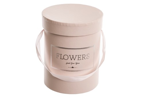 Pudełko dekoracyjne z pokrywką na kompozycje kwiatowe lub wykorzystania użytkowego ze wstążką dekoracyjną. Kolor blady róż.