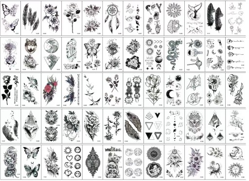 Zestaw 60 tatuaży zmywalnych, przepiękne, wyraźne wzory. Tatuaże doskonałe dla dzieci i młodzieży.