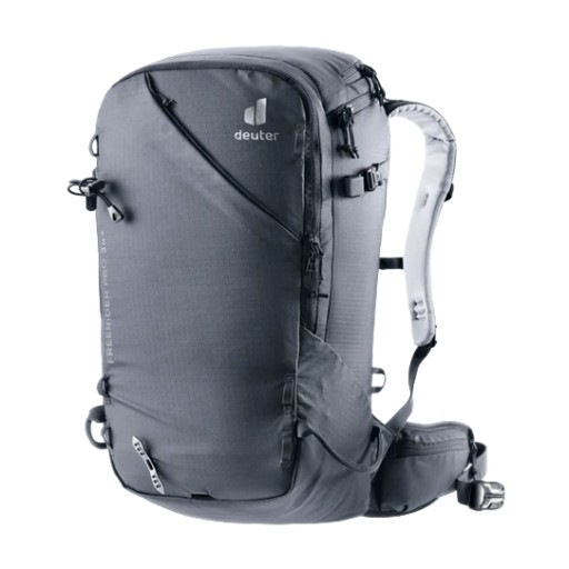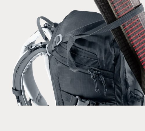 Freerider Pro ma wszystkie funkcje i elastyczną pojemność potrzebną do wielodniowych zimowych przygód w górach. Najnowsze wcielenie Freerider Pro ma nowe zamknięcie typu roll-top. Pozwala to zwiększyć pojemność plecaka o 10 litrów. Sam roll-top jest również wyposażony w chowany pasek do mocowania dodatkowego zestawu lub liny wspinaczkowej lub do kompresji samego roll-topa. W ciągu dnia, gdy nie potrzebujesz nart, rakiet śnieżnych lub snowboardu, można je szybko i łatwo przymocować na zewnątrz plecaka za pomocą dwóch dedykowanych pasków; narty można przymocować po przekątnej pleców lub w ramie A, snowboard lub rakiety śnieżne w pozycji pionowej. Te wszechstronne paski mogą być również używane do kompresji.