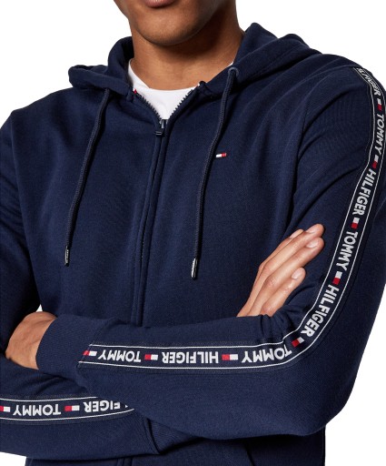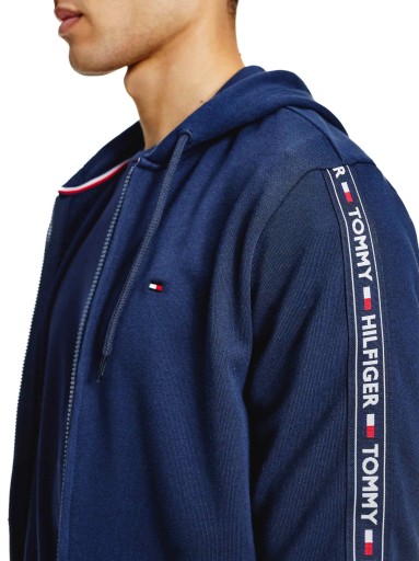 - Logo: wyszywane na lewej piersi, na rękawach taśma z napisami "Tommy Hilfiger" i logami firmowymi, na suwaku grawerowany napis "Hilfiger"