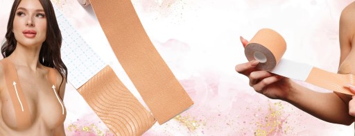 -taśmę BOOB TAPE, a na wewnętrznej stronie kratka pozwalająca na równe ucięcie i odmierzenie długosci jakie będa Ci potrzebne. Pamiętaj taśmy należy kleić kawałkami, najlepiej maksymalnie 20 cm.